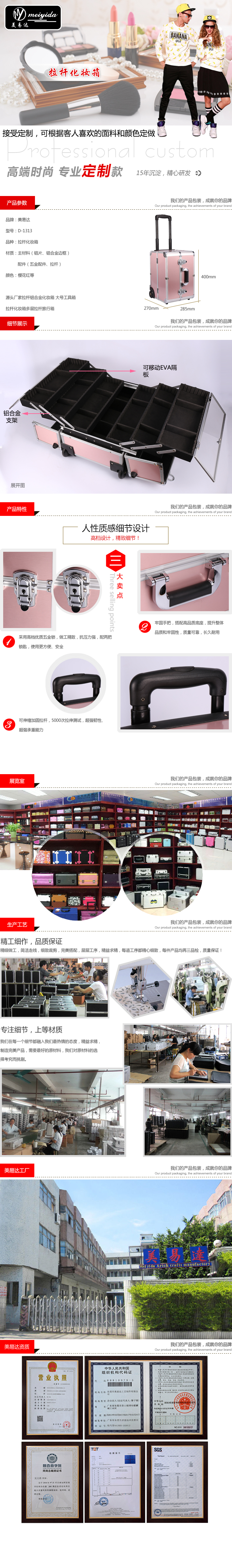 粉红拉杆化妆箱 D-1313